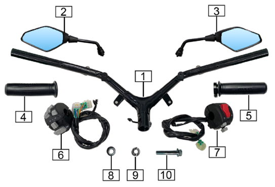 Zongshen #1 - Handlebars fits ES5 Handlebars Controls Mirrors Part Diagram Number: 1 SKU: ZES06-101 Sold Qty: Each Fits Model: ES5 HandlebarsSold EachCompatible with CSC Motorcycles ES5 Electric ScooterPictured Diagram Number: 1Diagram: Handlebars Controls Mirrors MSRP: Price: CSC Price: $31.95 (You save ) Quick view Out Of Stock