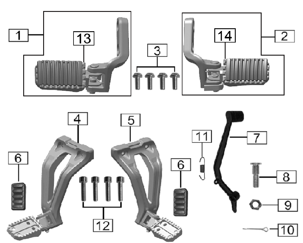 Zongshen #14 - Right Front Footpeg fits RX1E Foot Pegs Part Diagram Number: 14 SKU: XE19-113 Sold Qty: Each Fits Model: RX1E Right Front FootpegSold EachCompatible with CSC Motorcycles RX1EPictured Part Number: 14Diagram: Foot Pegs MSRP: Price: CSC Price: $22.95 (You save ) Add to Cart Quick view